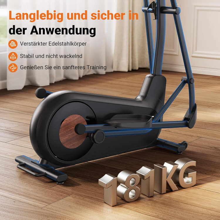 Und auch die maximale Tragkraft von 180 Kilogramm kann sich sehen lassen: hier können auch schwere oder große Personen problemlos trainieren. Diese rückt den Crosstrainer im Bereich Stabilität in die Nähe professioneller Studiogeräte und ist in dieser Preisklasse ein großer Pluspunkt.